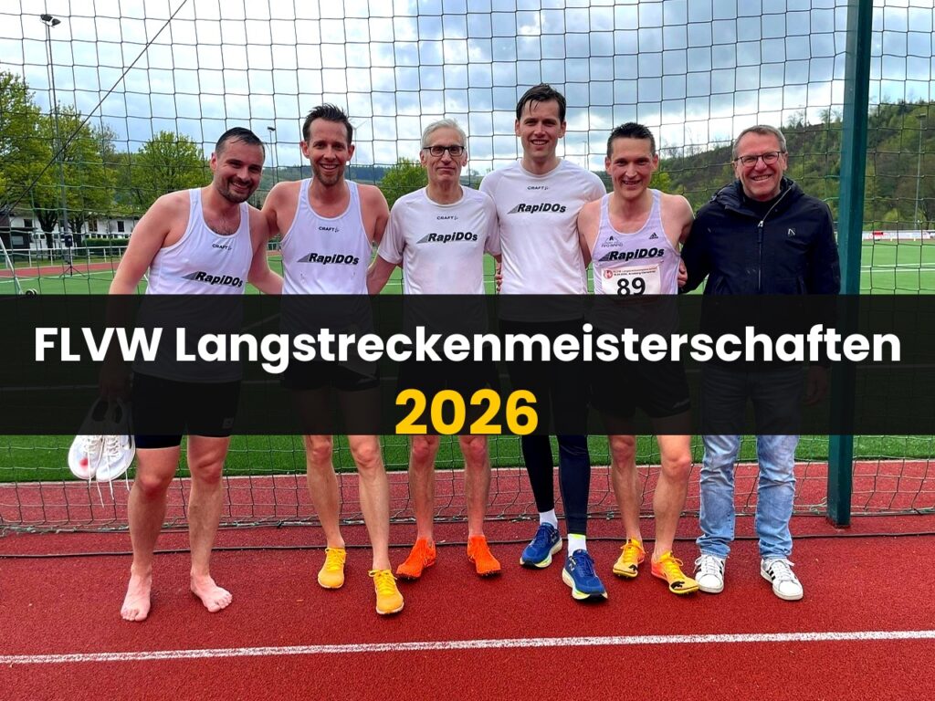 Bei durchwachsenem Frühlingswetter traten die Langstreckenläufer des LC Rapid Dortmund bei den FLVW Langstreckenmeisterschaften auf dem Sportplatz „In den Oeren“ in Arnsberg-Oeventrop an. Insbesondere der 10.000-m-Lauf, der um 14:45 Uhr gestartet wurde, wurde durch einen Regenschauer mit kräftigen Windböen erschwert – schwierige Bedingungen, unter denen dennoch beachtliche Leistungen erzielt wurden.